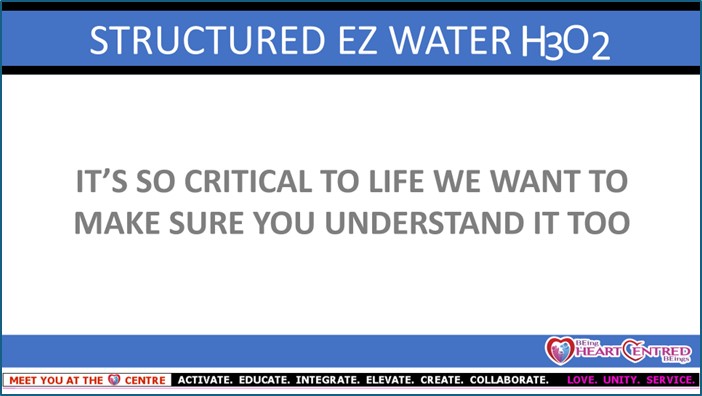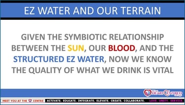 Given the symbiotic relationship between the SUN, our BLOOD, and the STRUCTURED EZ WATER found intra-cellularly within the human body, our education seminars focus on teaching people that their relationship with water is a direct reflection of their health and wellness.