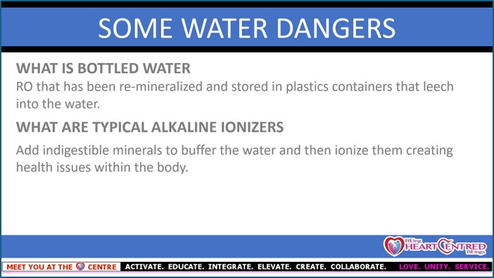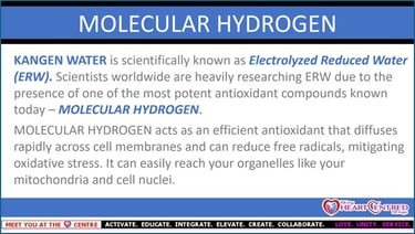 Enjoy some excerpts about water education; from its consciousness, to its structure in our body, as well as what top quality water really looks like, what molecular hydrogen actually is, as well as better understand what the term electolyzed reduced water is too, all from our seminars below.