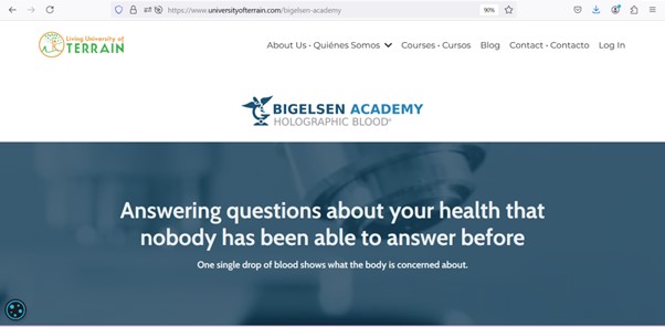 Should you wish to further explore the fascinating field of Holographic Blood through the Bigelsen Academy, under the Living University of Terrain umbrella, refer the link below:-