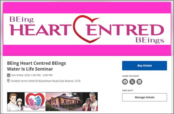 This first seminar for the year, titled 'Water Is Life' is being facilitated by Nina Digiglio and co-hosted by Craig Babic on Sunday 8th March 2026.